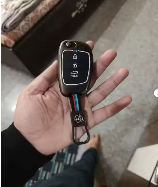 Premium Zinc Metal Flip Key Shell for Hyundai and more | 3 Button Key Cover Case with Keychain Ring for Creta, Venue, i10, i20, Alcazar & More